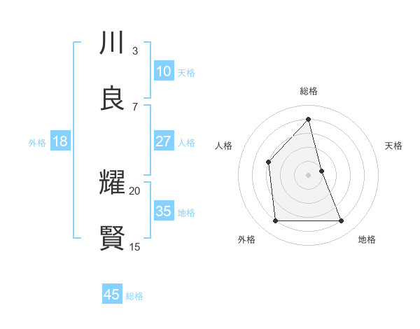 川良 耀賢さんを姓名の画数から五運を鑑定
