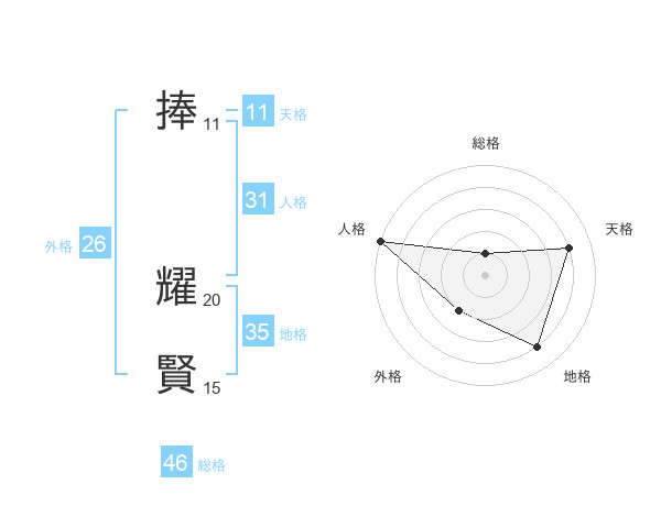 捧 耀賢さんの総格は46画の1点!