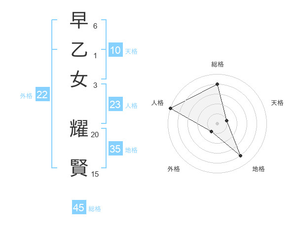 早乙女 耀賢さんを姓名の画数から五運を鑑定