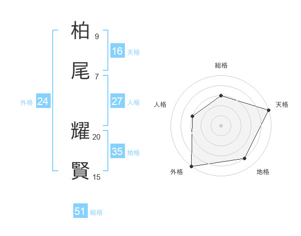 柏尾 耀賢さんの総格は51画の3点!