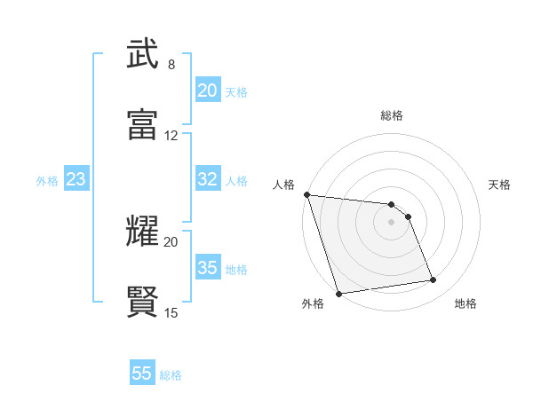 武富 耀賢さんの総格は55画の1点!