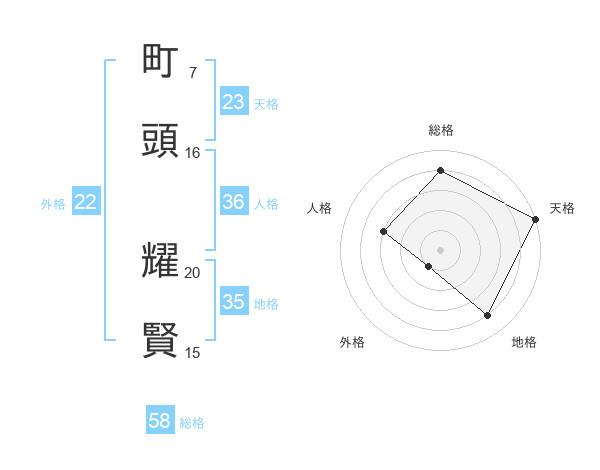 町頭 耀賢さんの総格は58画の4点!