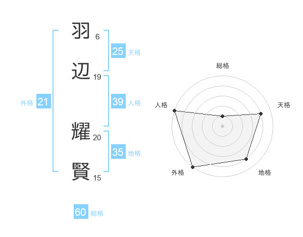 羽辺 耀賢さんの総格は60画の1点!