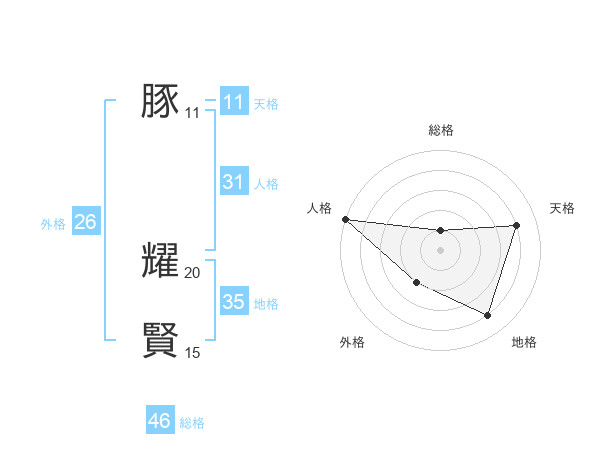 豚 耀賢さんの人格は31画の5点!