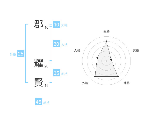 郡 耀賢さんの総格は45画の4点!