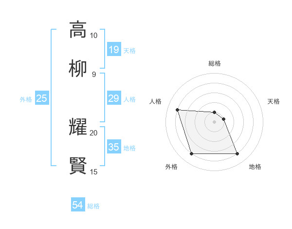 高柳 耀賢さんの総格は54画の1点!
