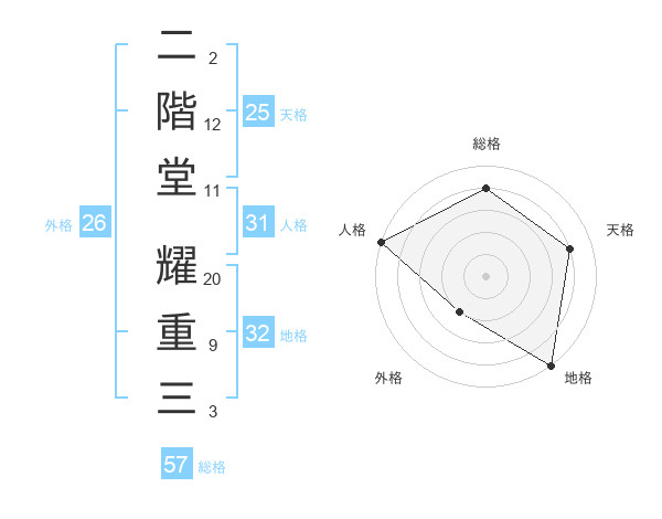 二階堂 耀重三さんの地格は32画の5点