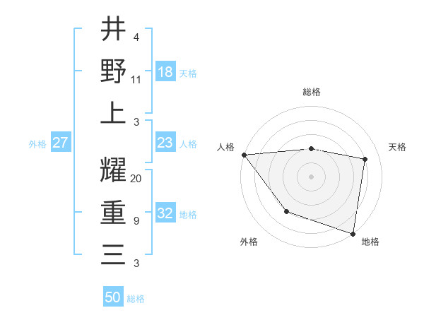 井野上 耀重三さんを姓名の画数から五運を鑑定
