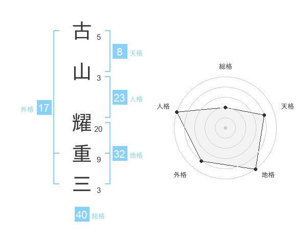 古山 耀重三さんを姓名の画数から五運を鑑定