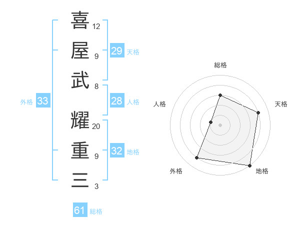 喜屋武 耀重三さんを姓名の画数から五運を鑑定