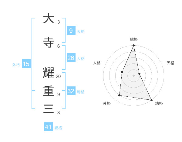 大寺 耀重三さんを姓名の画数から五運を鑑定