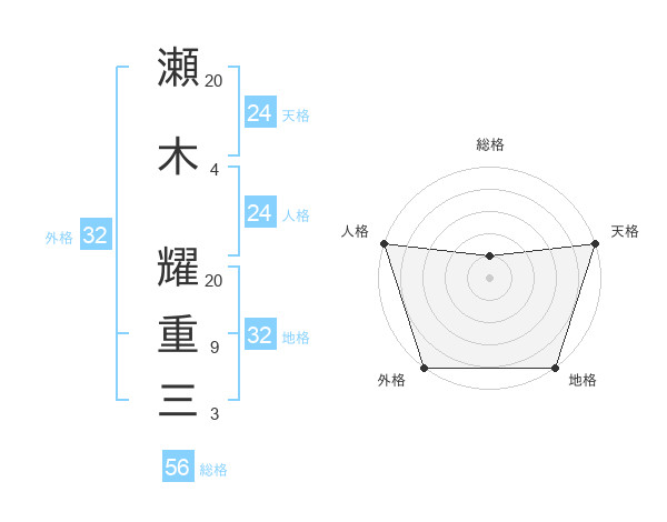 瀬木 耀重三さんを姓名の画数から五運を鑑定