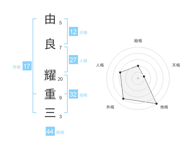 由良 耀重三さんを姓名の画数から五運を鑑定
