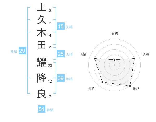 上久木田 耀隆良さんを姓名の画数から五運を鑑定