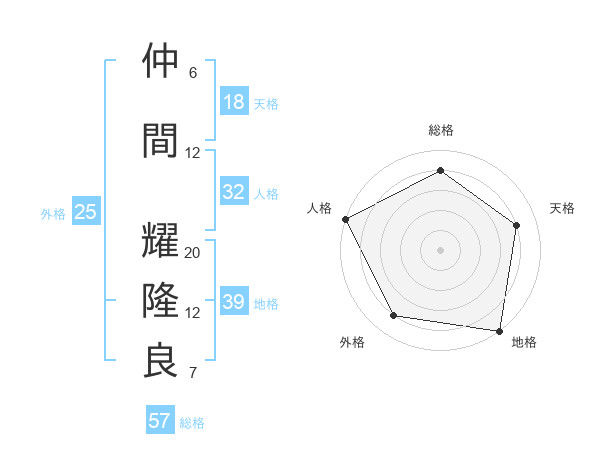 仲間 耀隆良さんの総格は57画の4点!
