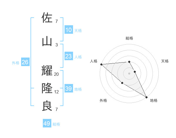 佐山 耀隆良さんの総格は49画の2点!