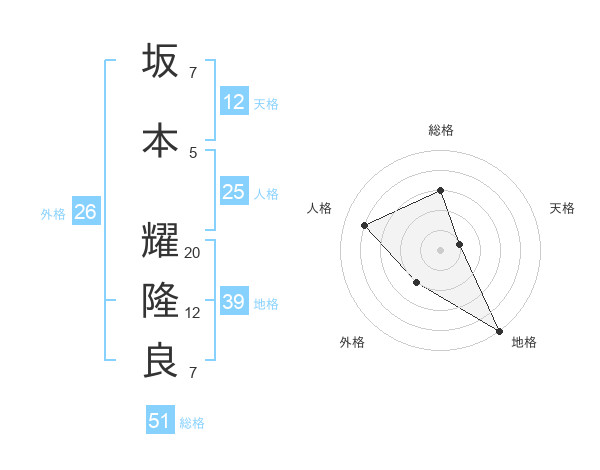 坂本 耀隆良さんの総格は51画の3点!