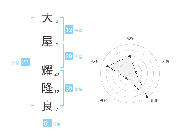 大屋 耀隆良さんの総格は51画の3点
