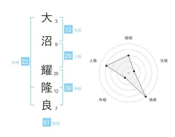 大沼 耀隆良さんを姓名の画数から五運を鑑定