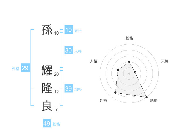 孫 耀隆良さんを姓名の画数から五運を鑑定