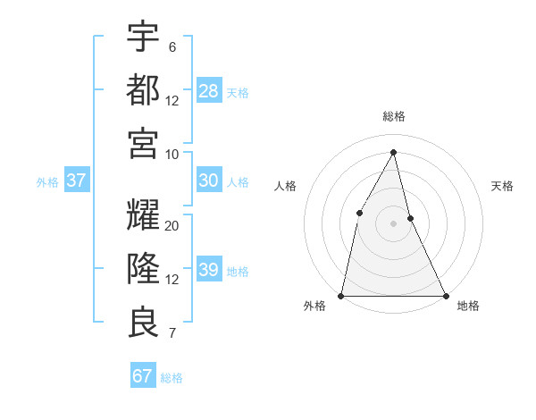 宇都宮 耀隆良さんを姓名の画数から五運を鑑定