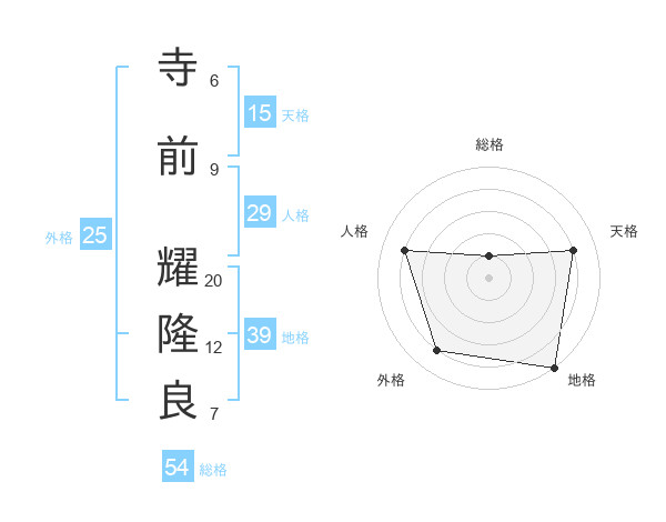 寺前 耀隆良さんの総格は54画の1点!