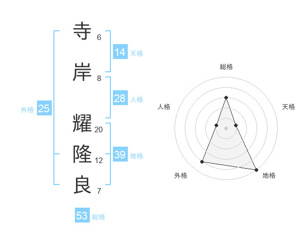 寺岸 耀隆良さんの地格は39画の5点!