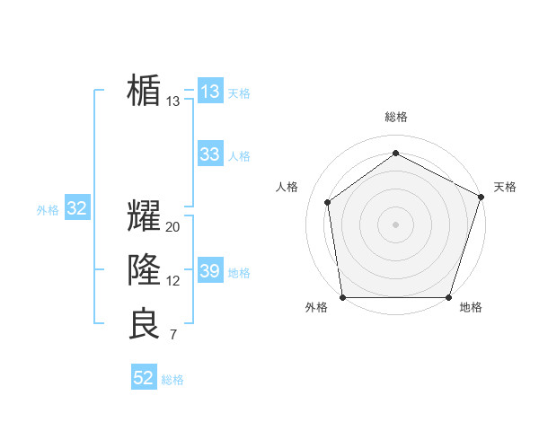 楯 耀隆良さんの総格は52画の4点!