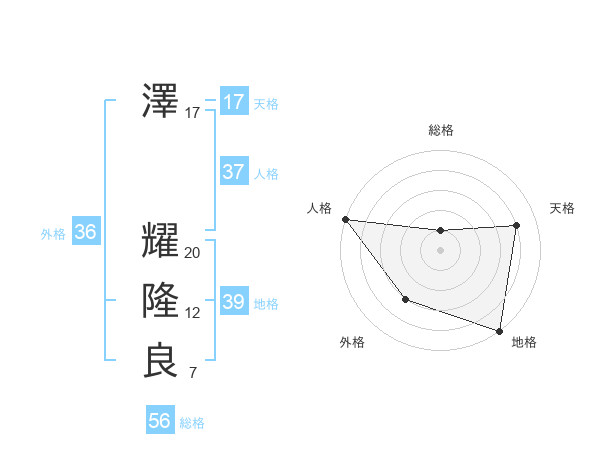 澤 耀隆良さんの総格は56画の1点!