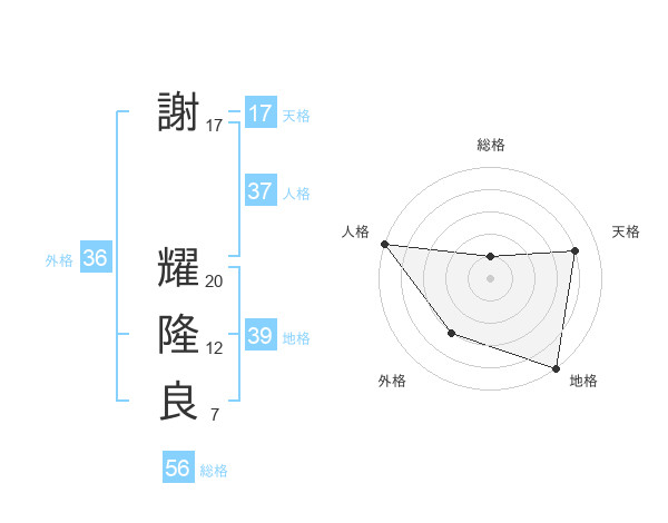 謝 耀隆良さんの人格は37画の5点!