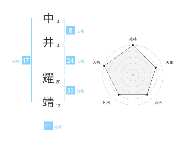 中井 耀靖さんを姓名の画数から五運を鑑定