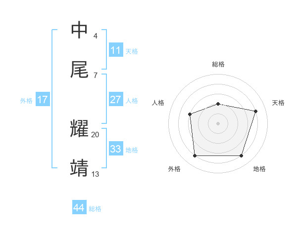 中尾 耀靖さんの天格は11画の4点!
