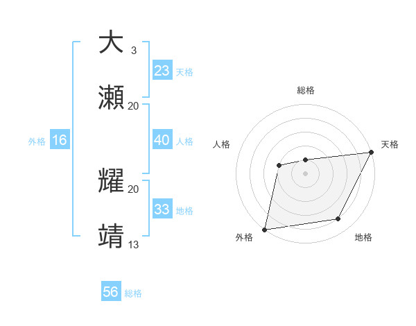 大瀬 耀靖さんを姓名の画数から五運を鑑定