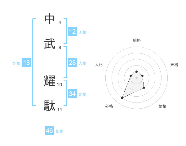 中武 耀駄さんの総格は46画の1点!