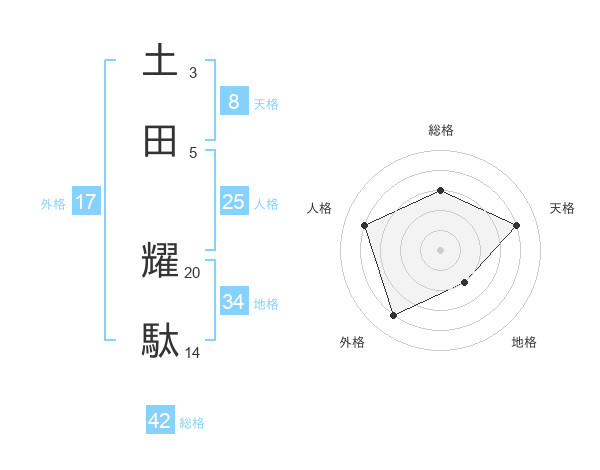 土田 耀駄さんを姓名の画数から五運を鑑定