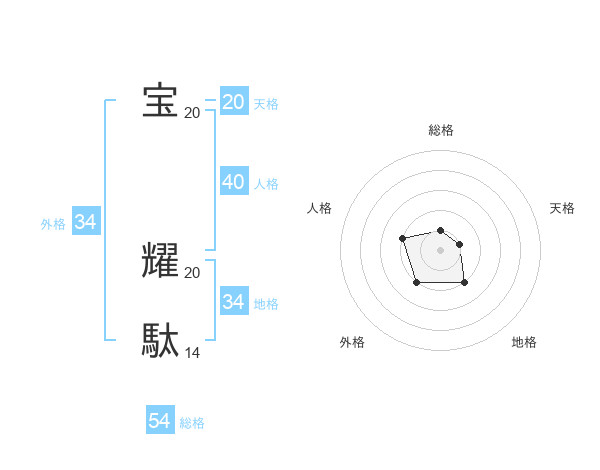 宝 耀駄さんの天格は20画の1点!