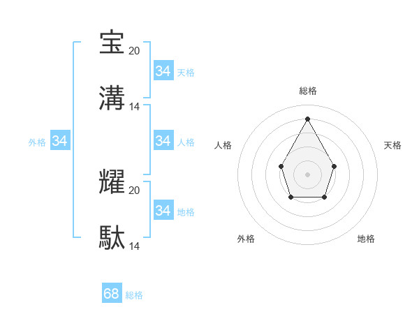 宝溝 耀駄さんの総格は68画の4点!