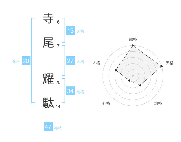 寺尾 耀駄さんの総格は47画の5点!