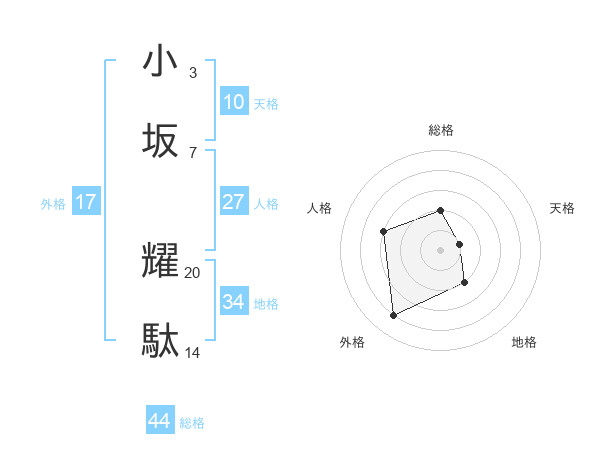 小坂 耀駄さんを姓名の画数から五運を鑑定
