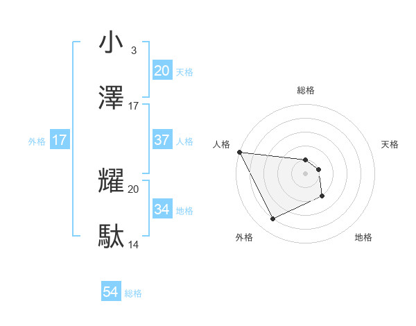 小澤 耀駄さんの天格は20画の1点!