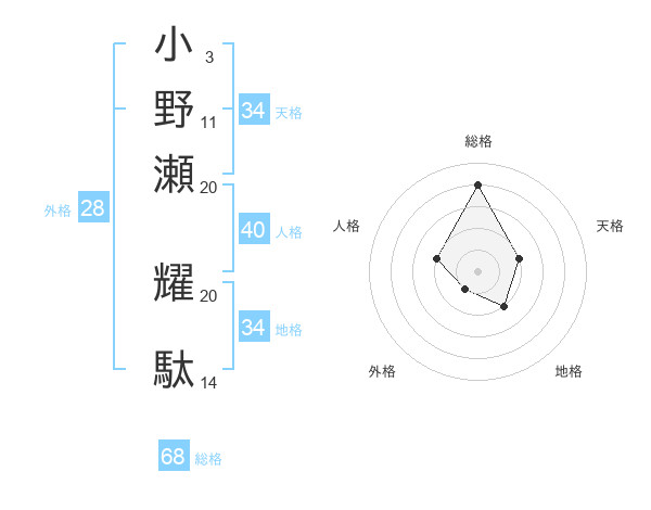 小野瀬 耀駄さんを姓名の画数から五運を鑑定