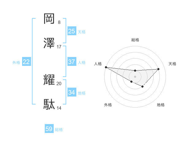 岡澤 耀駄さんを姓名の画数から五運を鑑定