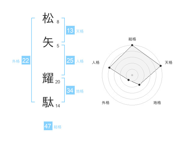 松矢 耀駄さんの総格は47画の5点!