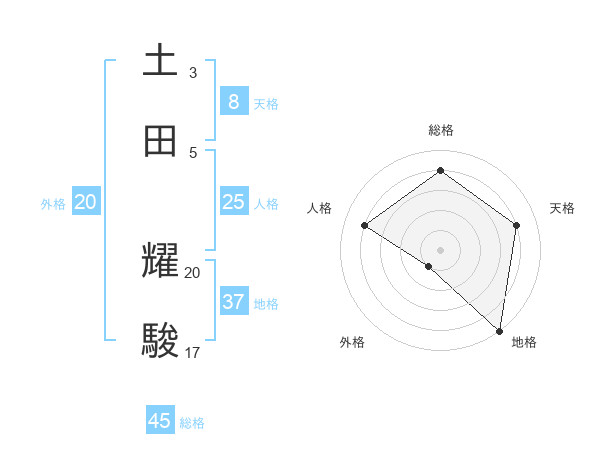 土田 耀駿さんを姓名の画数から五運を鑑定