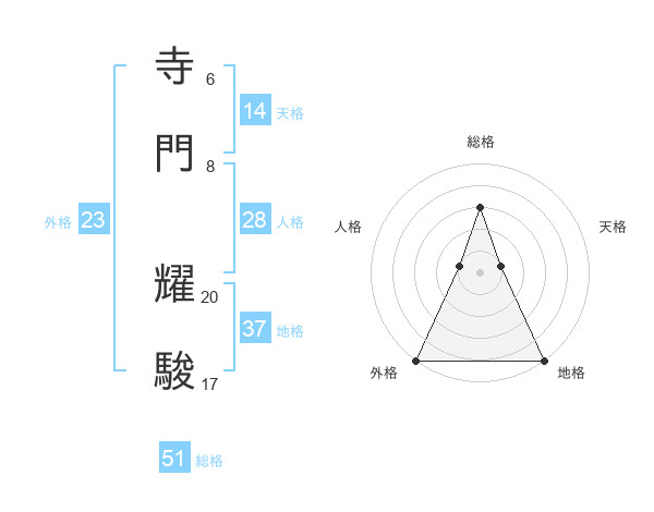 寺門 耀駿さんを姓名の画数から五運を鑑定