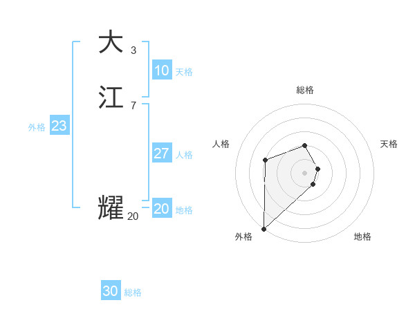 大江 耀さんの総格は30画の2点!