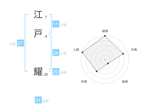 江戸 耀さんの総格は31画の5点!