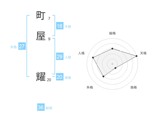 町屋 耀さんの天格は16画の5点!