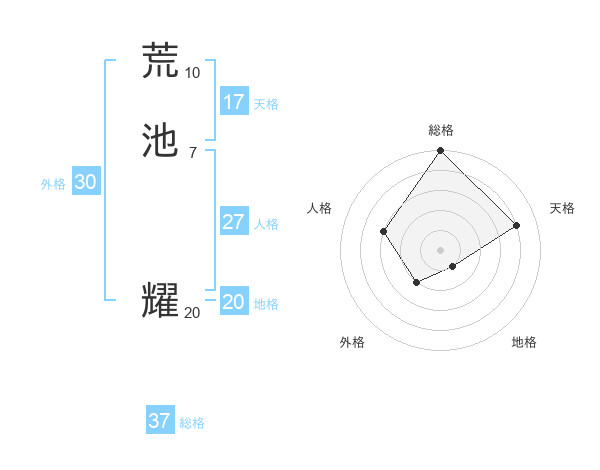 荒池 耀さんの総格は37画の5点!