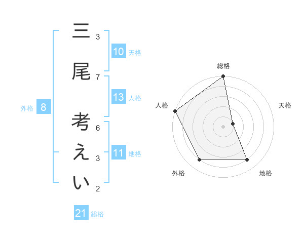 三尾 考えいさんを姓名の画数から五運を鑑定